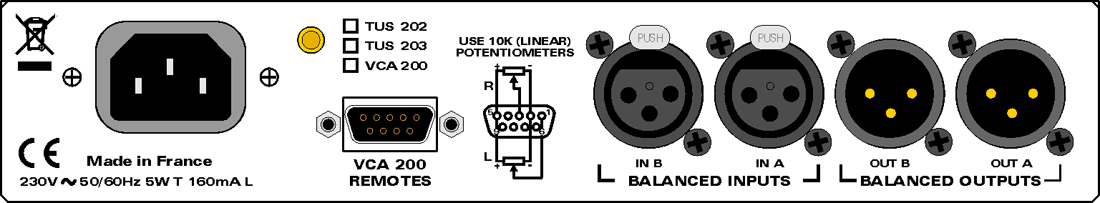 Le VCA200, inséré dans une chaîne d'amplification permet de régler le niveau sonore à distance. Il comprend deux canaux distincts pouvant être utilisés, soit en stéréo (mise en parallèle des deux commandes), soit en deux fois mono.