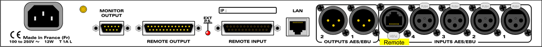 - Entrées / Sorties numériques au format AES/EBU sur transfo.